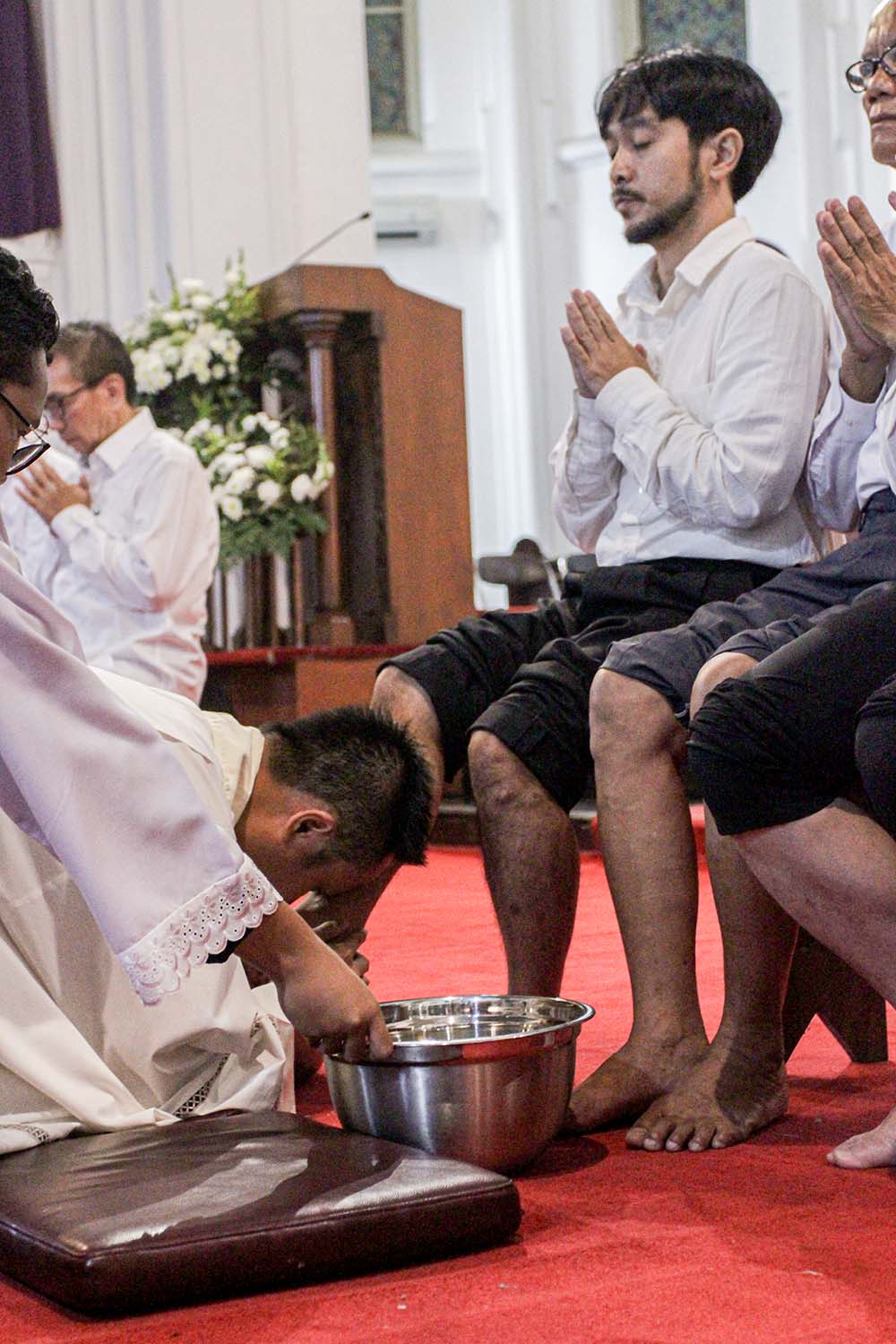 Yesus membasuh kaki para murid-Nya walaupun Ia mengetahui bahwa Ia akan menderita. Pada perayaan Ekaristi Kamis Putih kedua pukul 20.00 WIB RD Alfonsus Sombolinggi mengatakan “Dalam kekeringan itu kita tetap harus saling membasuh kaki dan itulah yang akan menjadi permenungan pada Kamis Putih ini.”